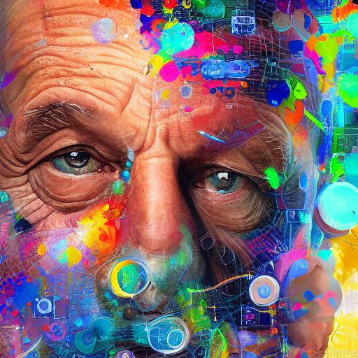 Abbildung 2 zeigt ein weiteres generierte Bild, mit dem Prompt „old man and his AI” (übersetzt „Alter Mann und seine KI”)